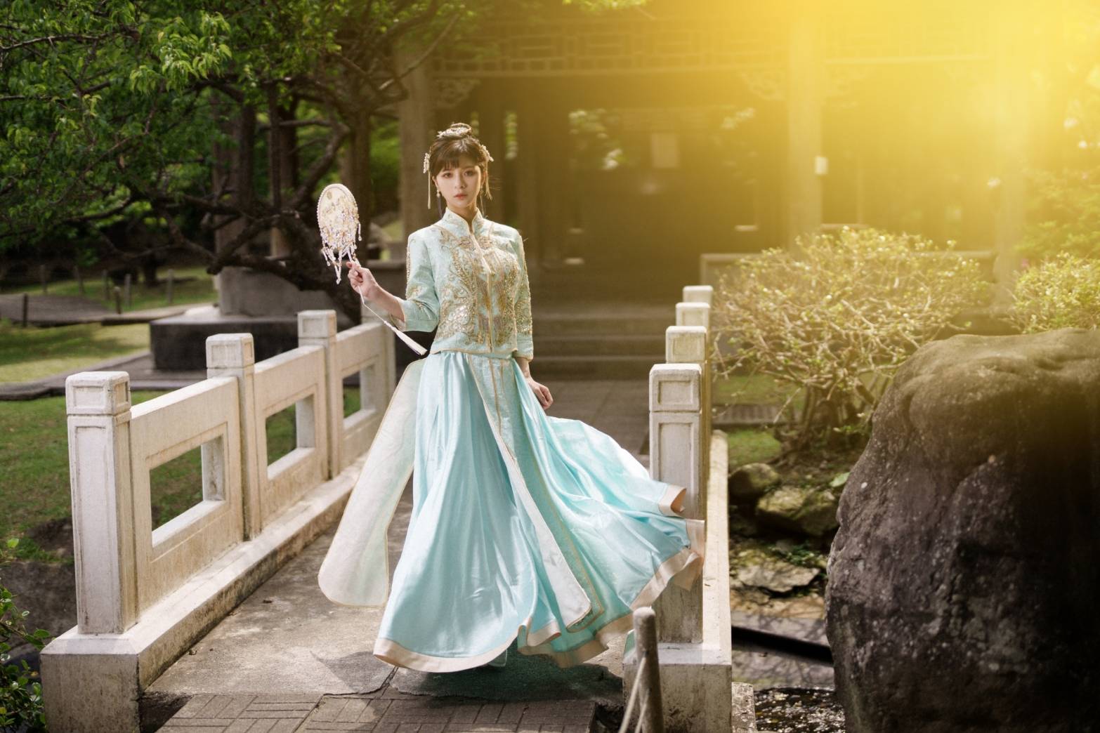 秀禾服的裙擺是傘擺的A字馬面裙設計,比起只能小步移動的龍鳳褂而言,穿著秀禾服的新娘活動會更加自如。而秀禾服較寬鬆的設計在選擇上更不挑人穿,非常適合身形較豐滿的新娘穿,會更能撐起婚服的版型。